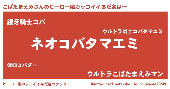 | ヘコむあだ名 | 『こばたまえみ(爆)』『こばっ子』 |