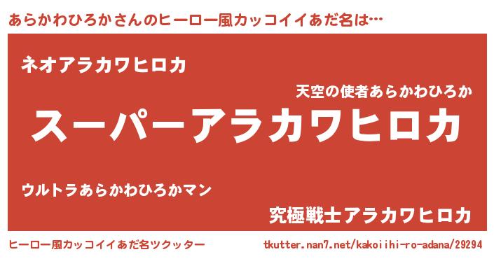 | 男性向けラノベタイトル風あだ名 | 『アラカワヒロカアートオンライン』 |