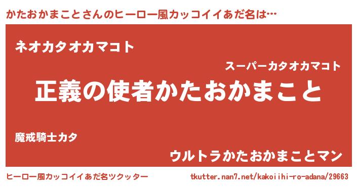 | 男性向けラノベタイトル風あだ名 | 『おまえをオタクにしてやるから、俺をかたおかまことにしてくれ! 』 |