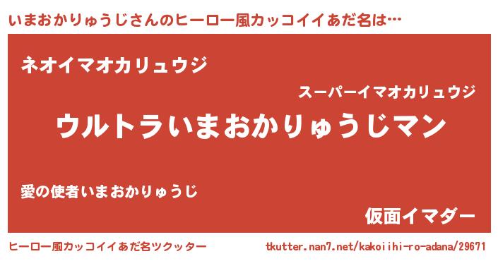 | 男性向けラノベタイトル風あだ名 | 『はたらくいまおかりゅうじさま!』 |
