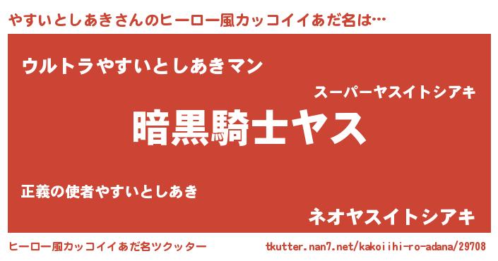 | 男性向けラノベタイトル風あだ名 | 『ヤスイトシアキスレイヤー』 |