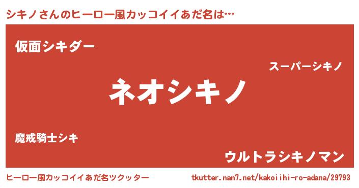 | ヘコむあだ名 | 『シキノ(笑)』『酢こんぶ』『シキを』 |