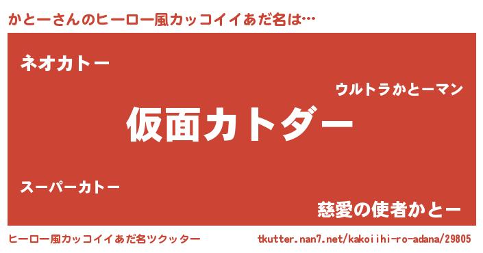 | 男性向けラノベタイトル風あだ名 | 『魔弾の王とかとー』『緋弾のカトー』 |