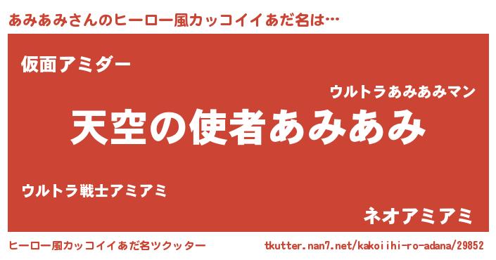 | ヘコむあだ名 | 『あみあみ(爆)』『つくし』『あみを』 |