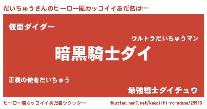 | 男性向けラノベタイトル風あだ名 | 『ダイチュウスレイヤー』 |