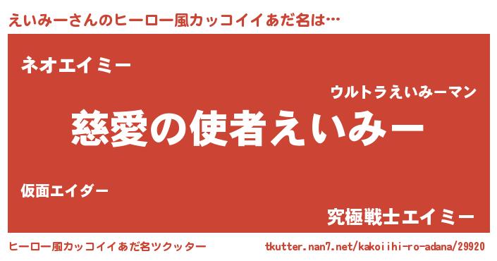 | 男性向けラノベタイトル風あだ名 | 『えいみー~年齢イコール彼女いない歴の魔法使い~』 |