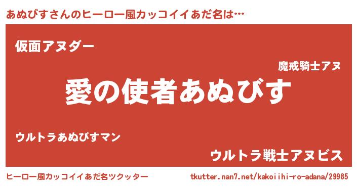 | 男性向けラノベタイトル風あだ名 | 『おまえをオタクにしてやるから、俺をあぬびすにしてくれ! 』 |