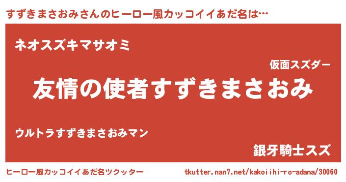 | 男性向けラノベタイトル風あだ名 | 『おまえをオタクにしてやるから、俺をすずきまさおみにしてくれ! 』 |