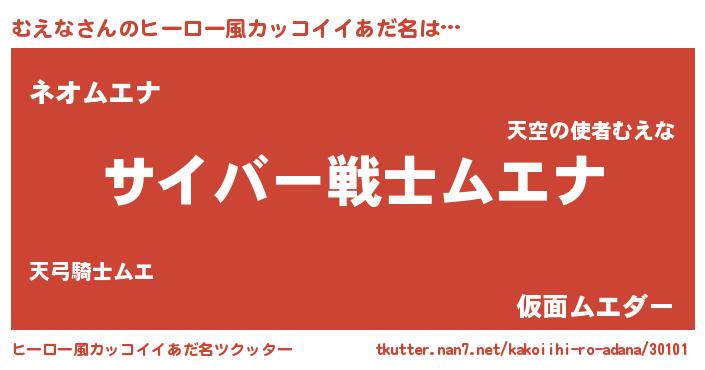| 意味不明あだ名 | 『自称むえな』『つくし科むえな属』 |