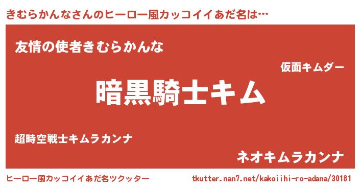 | 胡散臭い通販商品みたいなあだ名 | 『信頼と実績のサプリメント…その名も「きむらかんな」』 |