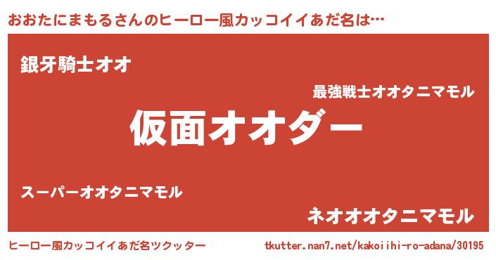 | 男性向けラノベタイトル風あだ名 | 『魔弾の王とおおたにまもる』 |
