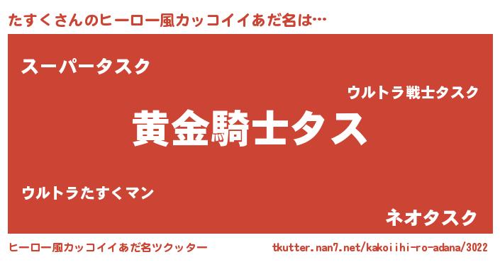 | 胡散臭い通販商品みたいなあだ名 | 『信頼と実績のサプリメント…その名も「たすく」』 |