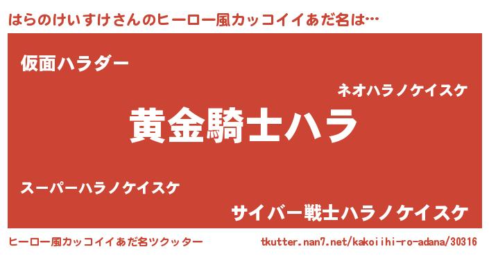 | 女子向けラノベタイトル風あだ名 | 『はらのけいすけは平凡を望む』 |