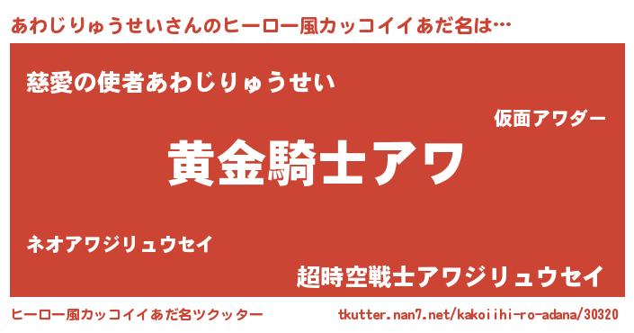 | 意味不明あだ名 | 『とにかく怪しいあわじりゅうせい』 |