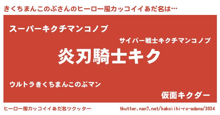 | 男性向けラノベタイトル風あだ名 | 『きくちまんこのぶの嫁は女の子じゃないと思った?』 |