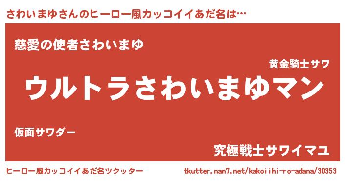 | ファンタジー風あだ名 | 『エターナルサワイマユー』『ゼサワトゥ』 |