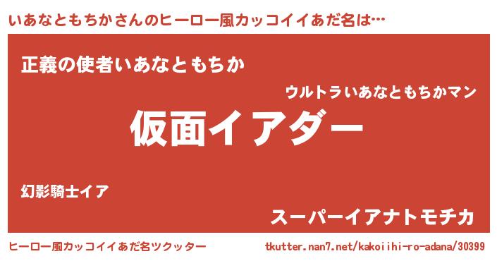 | 胡散臭い通販商品みたいなあだ名 | 『あなたにだけ特別に提供する100年もののヴィンテージワイン…その名も「いあなともちか」』 |