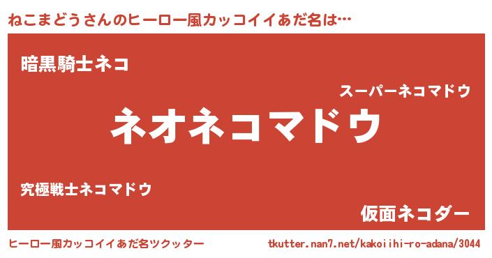 | 胡散臭い通販商品みたいなあだ名 | 『前代未聞の健康食品…その名も「ねこまどう」』 |