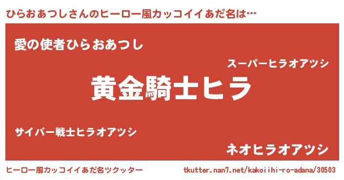 | 胡散臭い通販商品みたいなあだ名 | 『信頼と実績のサプリメント…その名も「ひらおあつし」』 |