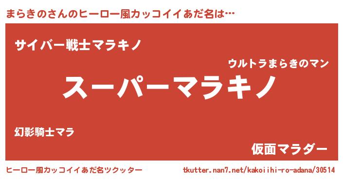まらきのさんのヒーロー風カッコイイあだ名をツクッター!