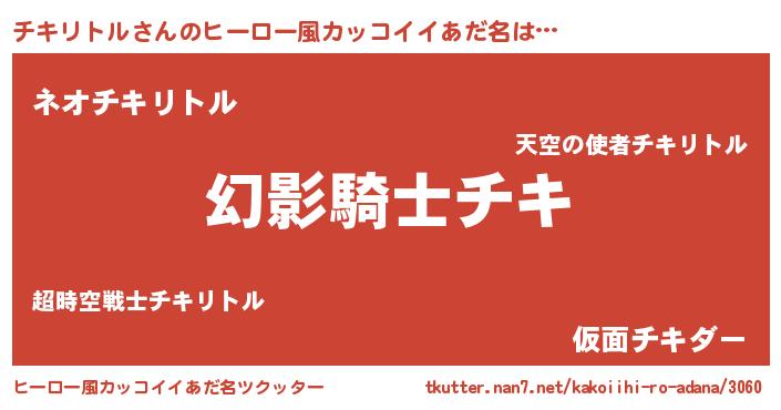 | 男性向けラノベタイトル風あだ名 | 『チキリトルの嫁は女の子じゃないと思った?』 |