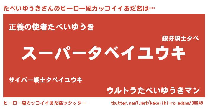 | 男性向けラノベタイトル風あだ名 | 『たべいゆうきの憂鬱』 |