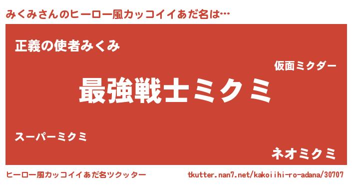 | 男性向けラノベタイトル風あだ名 | 『Re:みくみから始める異世界生活』 |