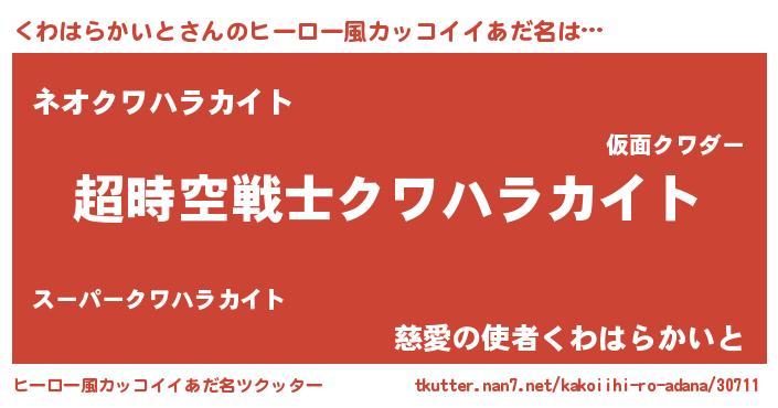 | 女子向けラノベタイトル風あだ名 | 『くわはらかいとなんてお断りですっ。』 |