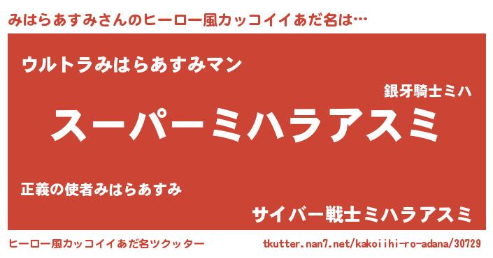 | 男性向けラノベタイトル風あだ名 | 『ミハラアスミアートオンライン』 |