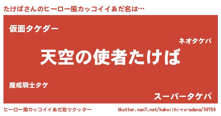 | 女子向けラノベタイトル風あだ名 | 『死神たけばの再婚』 |