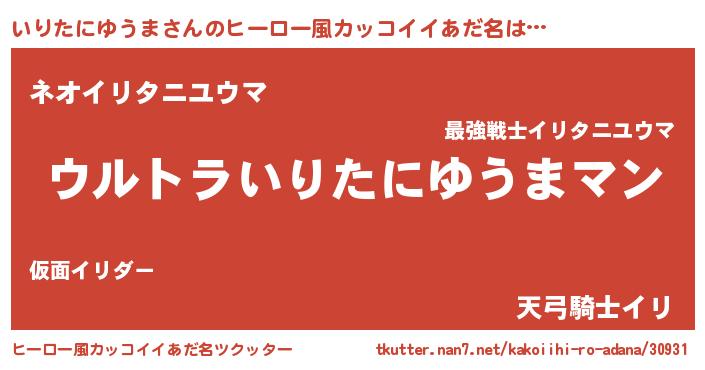 | 男性向けラノベタイトル風あだ名 | 『やはりいりたにゆうまの青春ラブコメはまちがっている 』 |