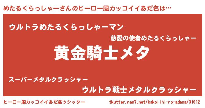 | 意味不明あだ名 | 『とにかく怪しいめたるくらっしゃー』 |