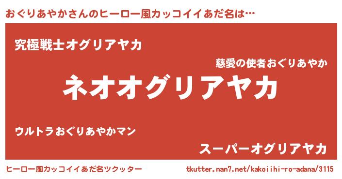 | ヘコむあだ名 | 『おぐりあやか(笑)』『おぐっふぃ~』 |