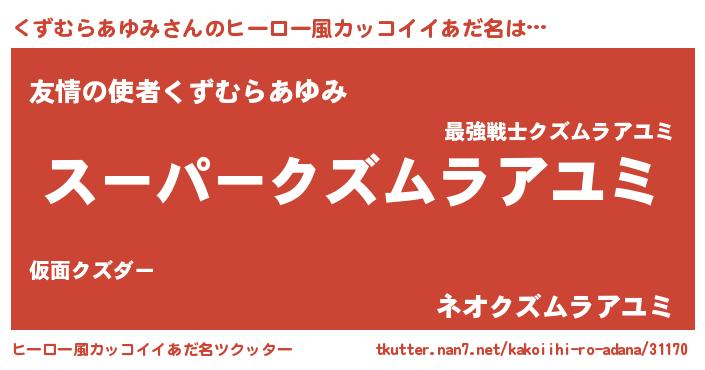 | ヘコむあだ名 | 『くずにゅー』『くずむらあゆみ(苦笑)』 |