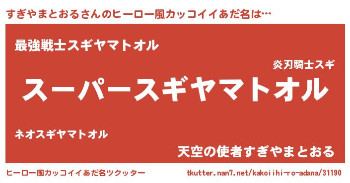 | 男性向けラノベタイトル風あだ名 | 『すぎやまとおる~年齢イコール彼女いない歴の魔法使い~』 |