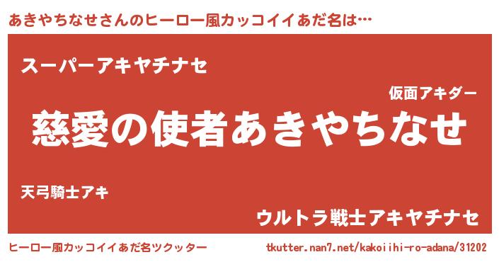 | 男性向けラノベタイトル風あだ名 | 『ノーゲーム・ノーアキヤチナセ』 |
