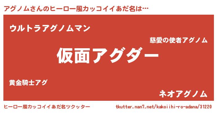 | 意味不明あだ名 | 『住所不定無職アグノム(74歳)』 |