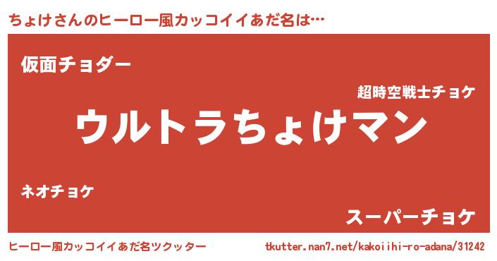 | 男性向けラノベタイトル風あだ名 | 『ちょけに滅ぼされるだけの簡単なお仕事です』 |