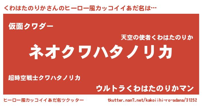 | 意味不明あだ名 | 『永久保存くわはたのりか』 |