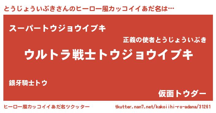 | 欧米人風あだ名 | 『とうじょういぶき・ステッグマイヤー』 |