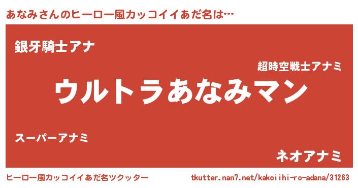 | 男性向けラノベタイトル風あだ名 | 『うちの娘の為ならば、俺はもしかしたらあなみも倒せるかもしれない。』 |