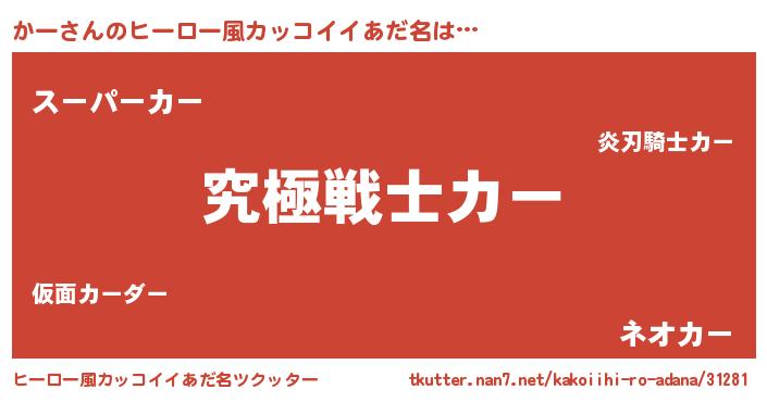 | 男性向けラノベタイトル風あだ名 | 『Re:かーから始める異世界生活』 |