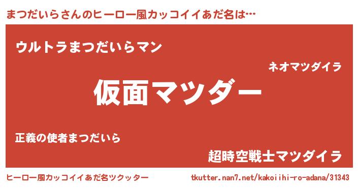| 男性向けラノベタイトル風あだ名 | 『まつだいら~年齢イコール彼女いない歴の魔法使い~』 |
