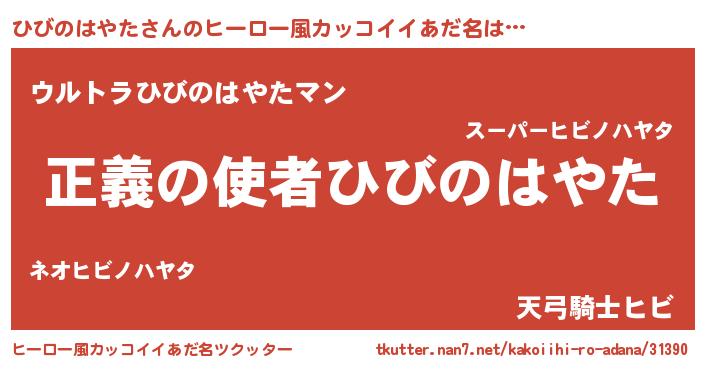 | 男性向けラノベタイトル風あだ名 | 『ヒビノハヤタスレイヤー』 |