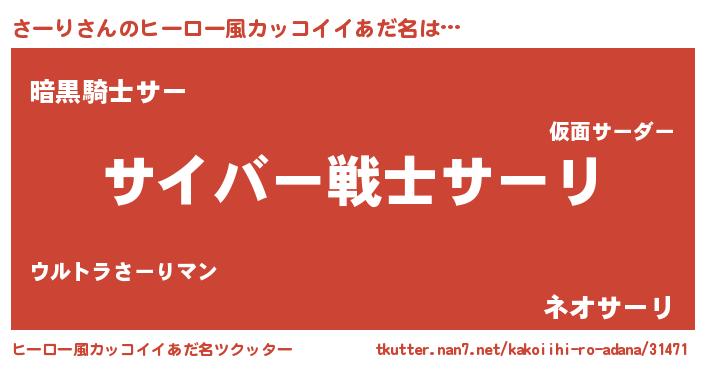 | 男性向けラノベタイトル風あだ名 | 『Re:さーりから始める異世界生活』 |