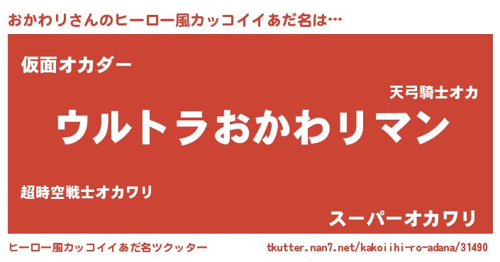 | 男性向けラノベタイトル風あだ名 | 『おかわリ~年齢イコール彼女いない歴の魔法使い~』 |