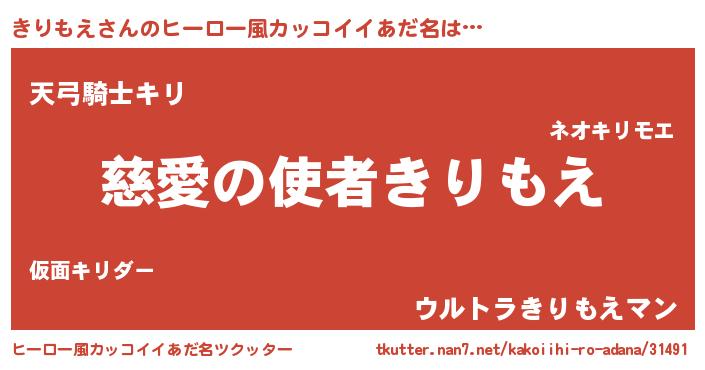 | 男性向けラノベタイトル風あだ名 | 『きりもえに滅ぼされるだけの簡単なお仕事です』 |