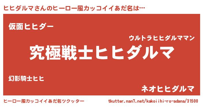 | 男性向けラノベタイトル風あだ名 | 『Re:ヒヒダルマから始める異世界生活』 |