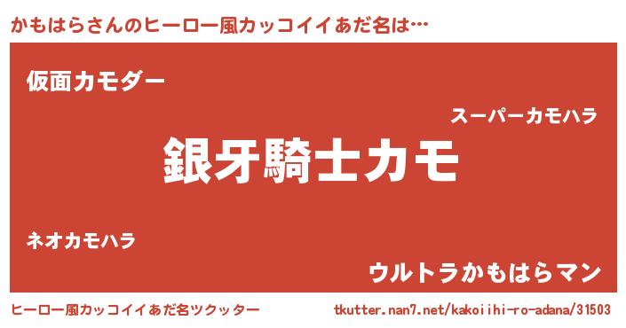 | 女子向けラノベタイトル風あだ名 | 『かもはらの卵を拾いまして』 |