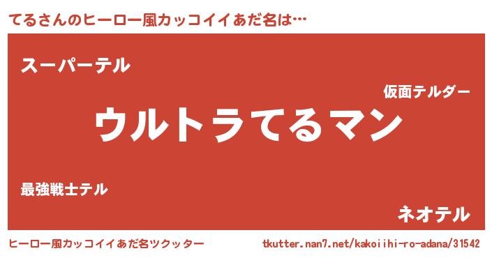 | 男性向けラノベタイトル風あだ名 | 『うちのてるが世界を掌握している!』 |